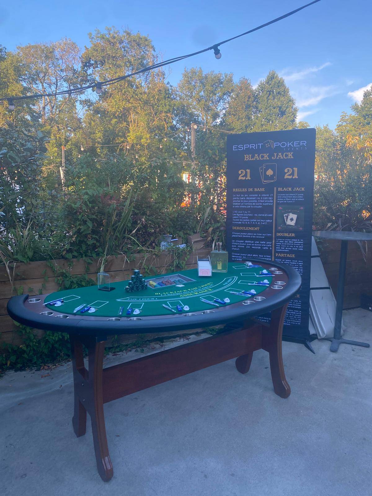 Imaginez vos invités transportés dans l'ambiance électrique d'un véritable casino, sans les enjeux financiers ! C'est l'expérience unique que propose Esprit Poker. Nous installons nos tables de jeu professionnelles au cœur de votre événement au Bambolo, et distribuons à vos convives des faux billets pour miser et s'amuser autour du blackjack, du poker ou encore de la roulette. Le but ? Le divertissement pur et la convivialité !