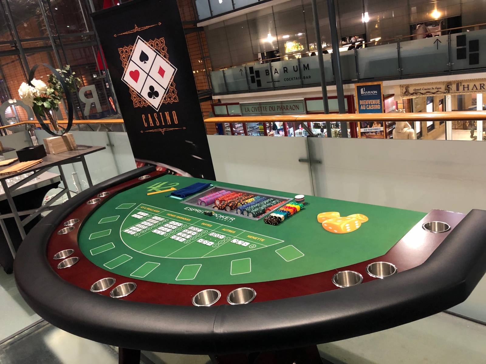 animations casino à Lyon ou également l'organisation du Winamax Poker Tour (voir photo). Cet établissement a d'autant plus de sens pour nos activités ludiques de casino que juste en dessous se situe le grand casino de Lyon, le Pharaon, tenu par le groupe Partouche.