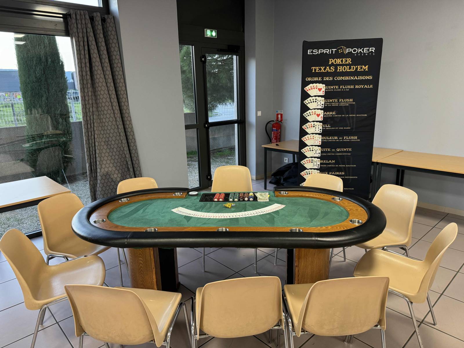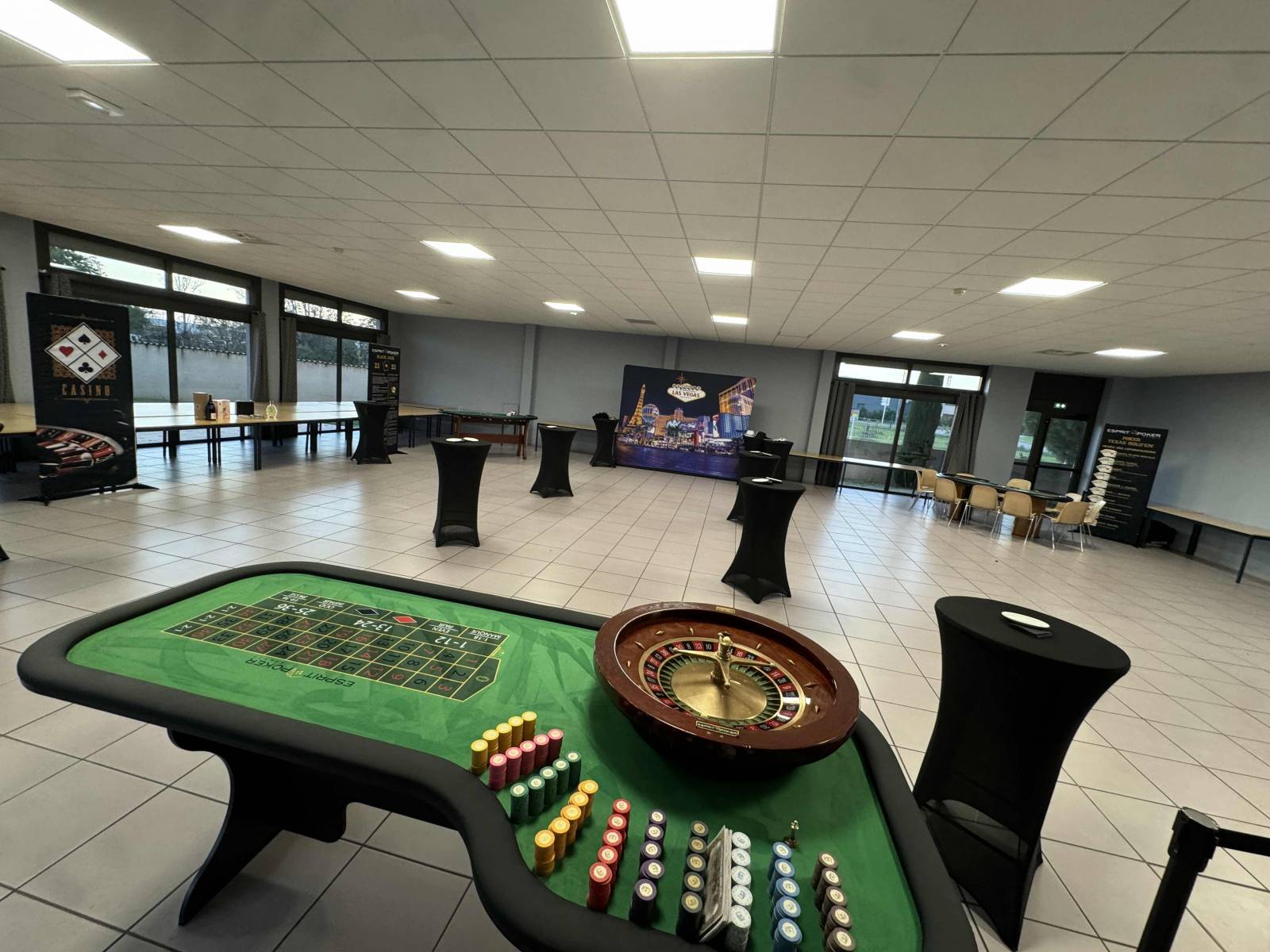 La modularité des espaces de l'Hôtel Sous les Pins en fait un lieu de réception particulièrement adapté pour intégrer des animations qui sortent de l'ordinaire. Chez Esprit Poker, nous avons eu le plaisir d'y organiser plusieurs événements réussis. Le volume et l'ouverture de la salle principale, par exemple, se prêtent magnifiquement bien à l'installation d'animations casino factices, offrant une activité originale et conviviale qui ravit toujours les participants, que ce soit lors d'une soirée d'entreprise ou d'une fête privée. C'est une excellente option pour ceux qui cherchent à dynamiser leur événement dans la Drôme.